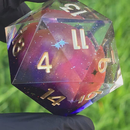 Polyedrischer D20 XL 55 mm – Planet Mars Dice | Handgemachter Resin Würfel mit Galaxie-Effekt & Goldzahlen | Universum Würfel für DnD, TTRPG